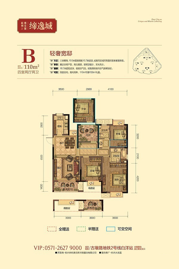 奥克斯缔逸城位于城西主轴古墩路上,北至城市规划支路,南至庄墩路,项目总建筑面积21万方,共由8幢高层住宅、1幢酒店式公寓、1幢办公楼组成,主力户型75 方、89方、115方。 建筑秉承精工理念,以简欧风格打造建筑经典型制,整体简洁、外观宏伟。住宅区部分建筑布局以大院豪庭的结构打造多个景观组团,运用景观轴线以及大尺度的住宅楼间距,提升了住宅品质。园区内部还设置了芳香漫跑道、智趣游乐天地、户外社交区、果园、宠物乐园等功能区。项目屹立于城西繁华,筑就一个生态、智慧、积极向上的年轻社区。 缔逸城自配5万方商业包含2万方商业街。40年独立产权旺铺,30-500方单层或双层布局,定位为美食、教育主题商业街,形成品质生活、美食、休闲娱乐、教育乐园主题业态分区,周边近100万方规划商业环伺。项目以南1.5公里亲亲家园商业街、三墩美食街、知味观、新华书店、建设银行等生活配套一应俱全。西田城、麦德龙、香港城、永旺梦乐城等购物商场轻松即享,周边繁华尽在执掌。教育及医疗资源也十分丰富,古墩路小学顺利开工,西湖区青少年宫三墩分宫,铺就成才路,浙江医院分院,为健康护航。政策扶植的梦栖小镇、阿里云谷计划等,为项目再添利好。 项目以北800米绕城高速,吉鸿快速,出入杭城全无忧。?