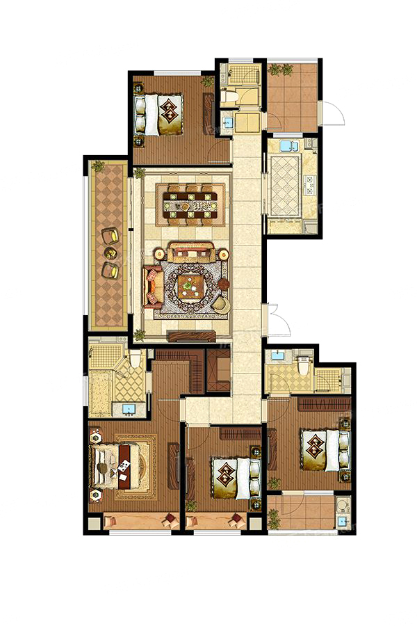 各个空间户型方正,方便室内家具布置;整个空间全明通透,采光良好,同时利于居住空间通风;卧室进卫生间需要穿过餐厅或客厅;卧室门朝向客厅或餐厅;客厅、卧室、卫生间和厨房等主要功能间的尺寸以及比例适中,有利于采光和通风,居住起来舒适、方便;公摊高于15%且低于25%,符合住宅公摊正常范围。
