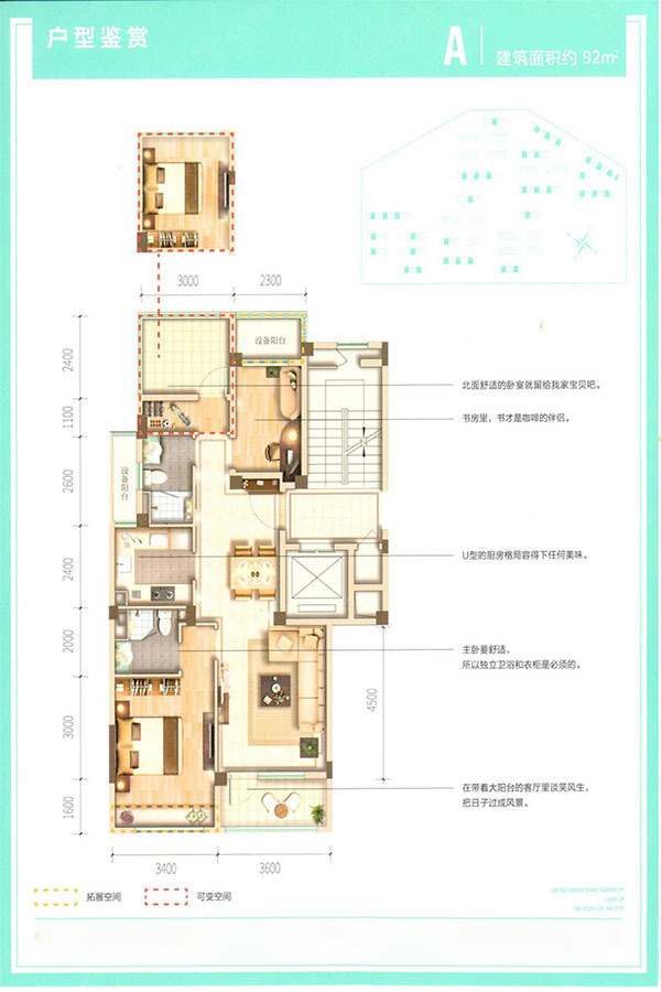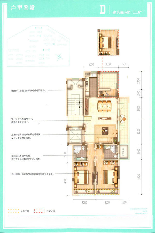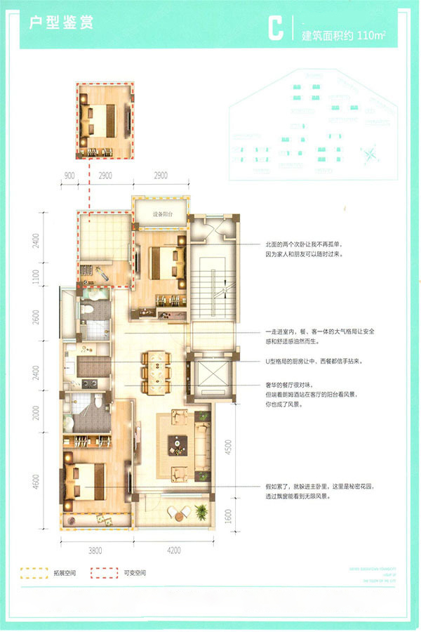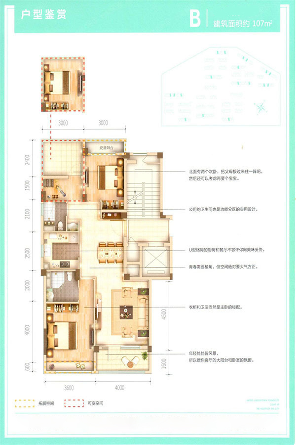 各个空间户型方正,后期空间利用率高;主卧卫生间没有对外窗户;卧室是休息的地方,需要安静,如果距离客厅和餐厅近会有噪音,影响休息。时间长,主人容易神经衰弱。卧室厨卫等各个功能区的面积大小都比较合理,居住体验便利,整体舒适度高;公摊低于15%,属于目前市场中公摊很低的户型。