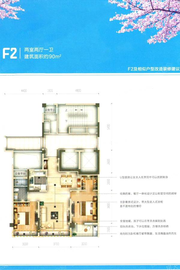 各个空间户型方正,方便室内家具布置;公卫卫生间没有对外窗户,可通过加装排风机改善通风除湿;居室布局合理,通风良好,动静分离,兼顾到了卧室和卫生间的私密性;客厅、卧室、卫生间和厨房等主要功能间的尺寸以及比例适中,有利于采光和通风,居住起来舒适、方便;公摊小,得房率高。