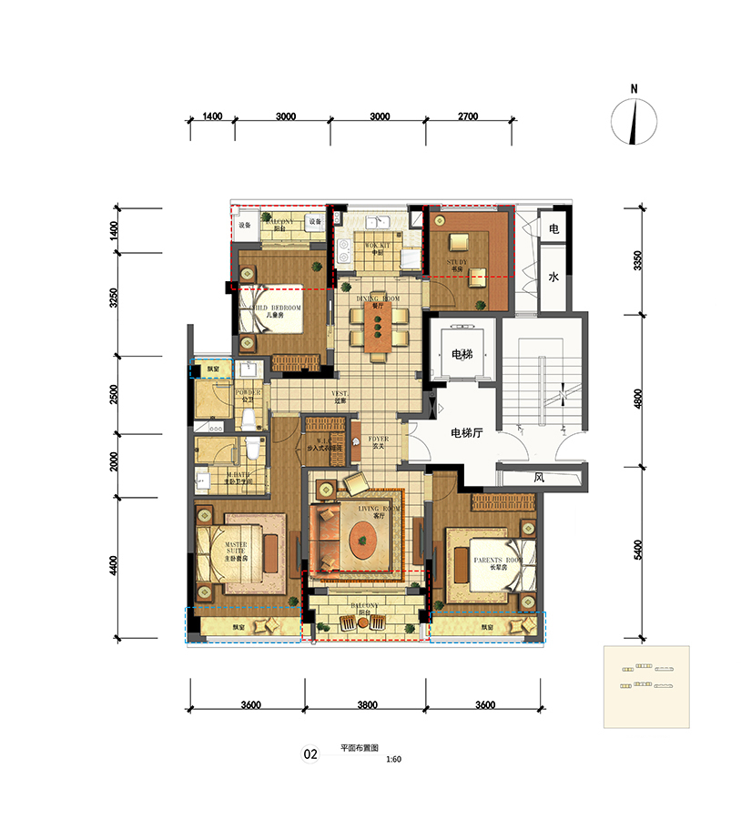 各个空间户型方正,后期空间利用率高;客厅、主卧非南向或东向;卫生间没有对外窗户,可通过加装排风机改善通风除湿;卧室作为休息区域,门朝向客厅或餐厅时,私密性一般;客厅、卧室、卫生间和厨房等主要功能间的尺寸以及比例适中,有利于采光和通风,居住起来舒适、方便;公摊高于15%且低于25%,符合住宅公摊正常范