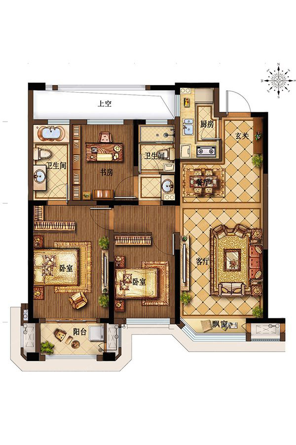 各个空间户型方正,方便室内家具布置;全明户型,各部分空间均有窗,可保证整体空间采光和通风,居住舒适度好;整体空间布局合理,能够保证动静分离和居室通风,方便使用;卧室厨卫等各个功能区的面积大小都比较合理,居住体验便利,整体舒适度高;公摊高于15%且低于25%,符合住宅公摊正常范围。