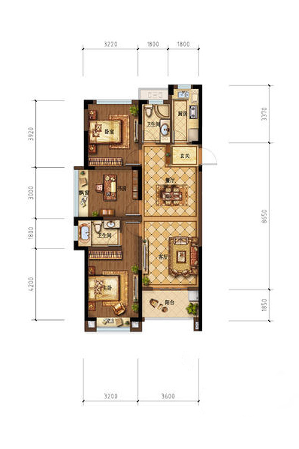 各个空间户型方正,方便室内家具布置;全明通透户型,居住舒适度较高,整个空间采光充足,利于后期居住;卧室是休息的地方,需要安静,如果距离客厅和餐厅近会有噪音,影响休息。时间长,主人容易神经衰弱。客厅、卧室、卫生间和厨房等主要功能间的尺寸以及比例适中,有利于采光和通风,居住起来舒适、方便;公摊高于25%