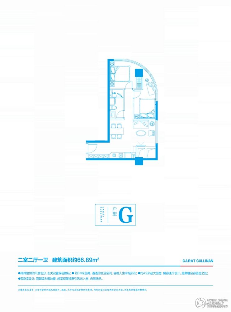 优点: 客厅方正,空间宽敞,适合接待来客; 厨房一字展开,与餐厅相连,方便上下菜; 双卧室设计,相对独立,兼顾收纳及办公空间; 缺点: 整体空间较为封闭,采光通风差; 餐厨与客厅开放,空间杂音、油烟共享; 卫生间无对外窗户,采光不好,排风透气差; 卧室门朝向客厅,私密性较差; 南侧卧室距离厕所较远;