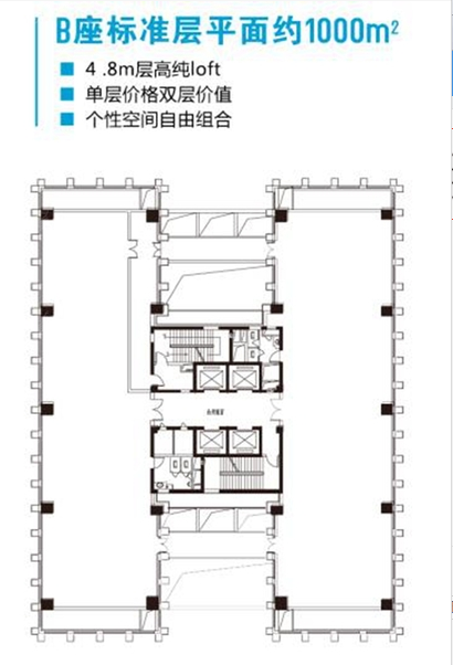 联合中心北区,总占地面积近2万平方米,由4幢德式风格的单体建筑组成,按照国际通行的智能化写字楼标准进行开发建设,总建筑面积约12万平方米,其中,地下2层,约3.6万平方米, 1—3层为商业裙楼,C幢总共22层,D幢总共25层。 D幢单层层高为3.8米,C幢单层层高4.8米,这个层高目前在钱江世纪城板块甚至在杭州写字楼项目中也是罕见的。现代企业的核心竞争力是人,是员工,是员工为企业研发了产品,创造了企业财富,拒绝压抑办公空间,关注员工身心健康是联合中心的开发理念,为入驻的企业老总以及员工提供可充分享受的舒适感和奢华感。