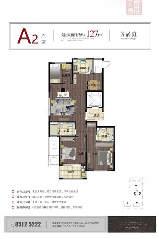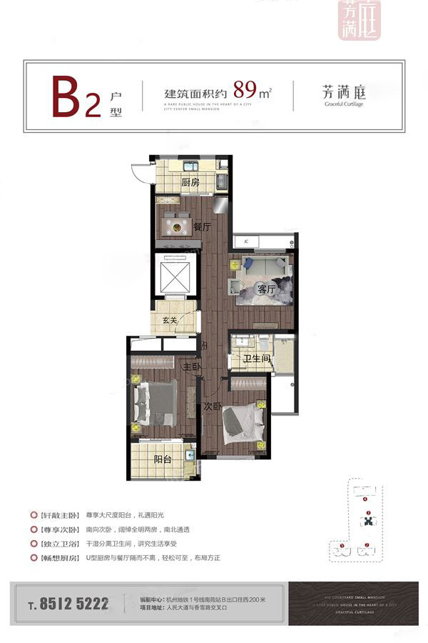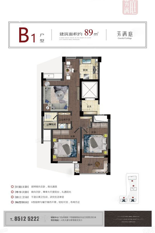 临平芳满庭,位于临平新城核心区,人民大道与香雪路交叉口,紧邻地铁1号线临平站,是当前临平新城最成熟的居住聚集区,也是未来最核心和繁华的区域。周边有水景公园、学校、医院、超市、商场等成熟丰盛配套。 项目由三幢精装成品住宅和1幢公寓组成。住宅房源主力户型建筑面积约为89—127平方米,酒店式公寓主力户型约为23—36平方米。 项目整体精装修交付,配备中央空调、老板电器、科勒卫浴等一线精装品牌。在此基础上,全区配置7项智能系统,可视对讲、指纹门锁、刷卡电梯、一键断电系统等,是板块内配备最多智能系统的小区。