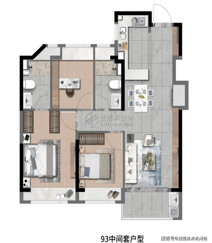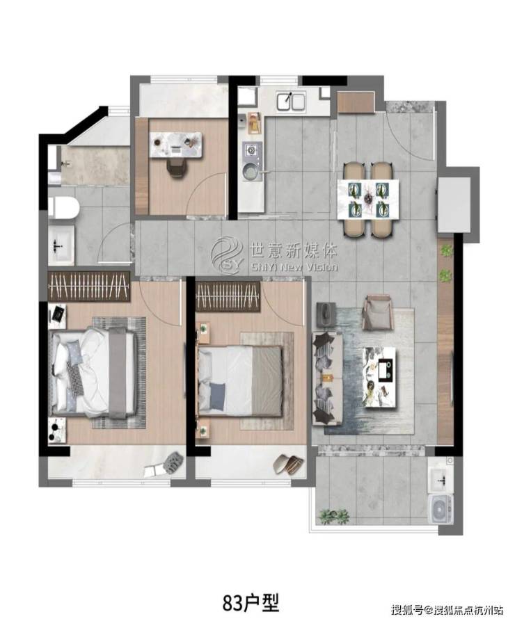 象屿深入考量空间与场景的运用,将生活中看得见与看不见的细节进行了细致打磨。玄关、阳台、厨房、卫浴均设置科学收纳空间,营造高品质生活体验的同时,更带给居者层建面约83㎡3房2厅1卫