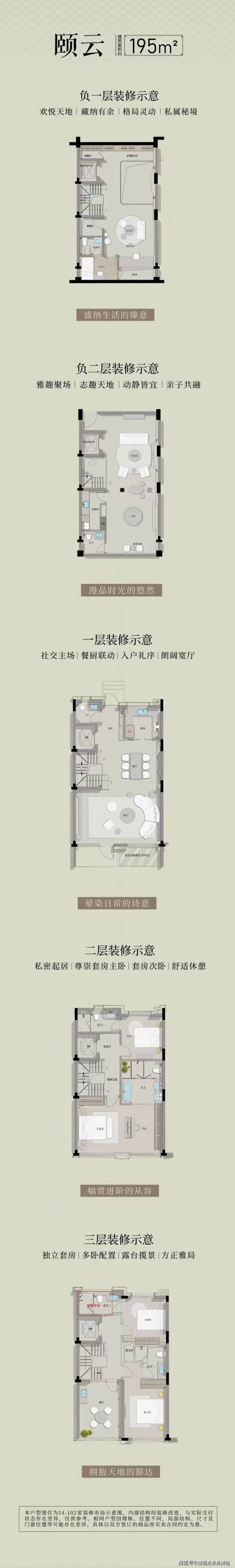 195㎡中间套:主打 “紧凑实用型院墅”,一层带阔南向私家庭院,推门即见绿植;地上三层空间功能分区清晰,三层预留专属露台,可打造观景或休闲角落;地下空间层高 5.8 米,支持灵活拓展为两层,配备双采光井,有效改善地下阴暗问题,避免传统地下室潮湿弊端。