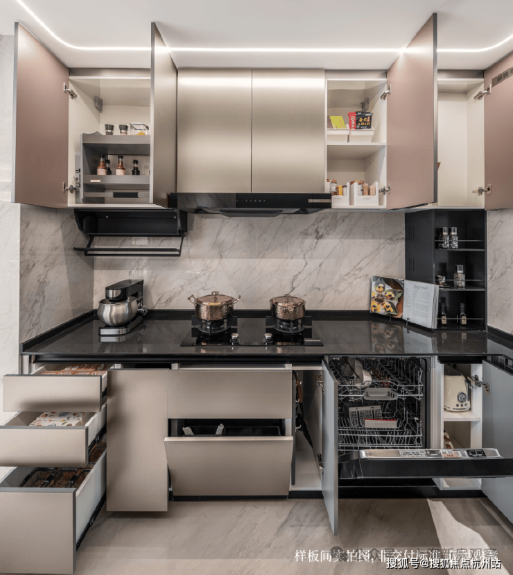 该户型厨电五件套选用“厨电界的劳斯莱斯”——嘉格纳。智能马桶、台盆、浴缸选自“世界顶级三劳”之一的劳芬,更集齐大金中央空调、地暖两联供、霍尼韦尔全热交换新风、骊住原装进口多功能水槽,YKK三玻两腔系统窗、华为鸿蒙智家系统等高规奢装,与市面上单价18万/㎡朝上的顶豪看齐!