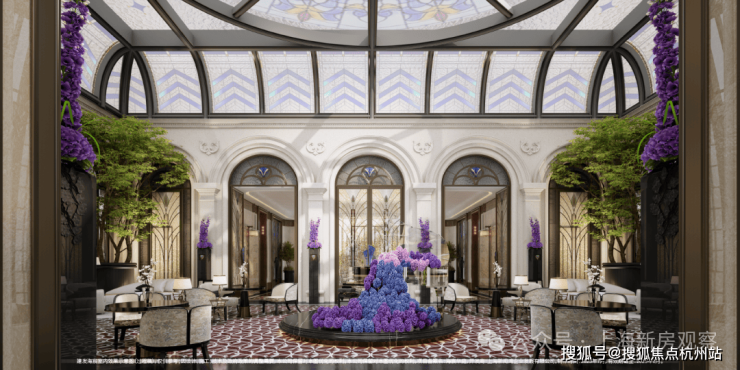 示范区以“玉兰门庭—迎归大堂—莳花荟”为核心轴线,运用非遗技艺与奢贵石材打造。约65米长玉兰门庭融合海派元素,9米挑高迎归大堂,汇集多位艺术家跨界作品,莳花荟中央会客厅再现海派社交场景。