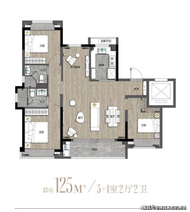 建面约125m²户型图