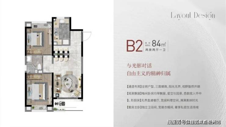 共有4个主力户型,包括建面约84㎡2房2厅1卫,约99㎡3房2厅2卫,约108㎡3房2厅2卫,约130㎡4房2厅2卫,户型设计的非常棒!