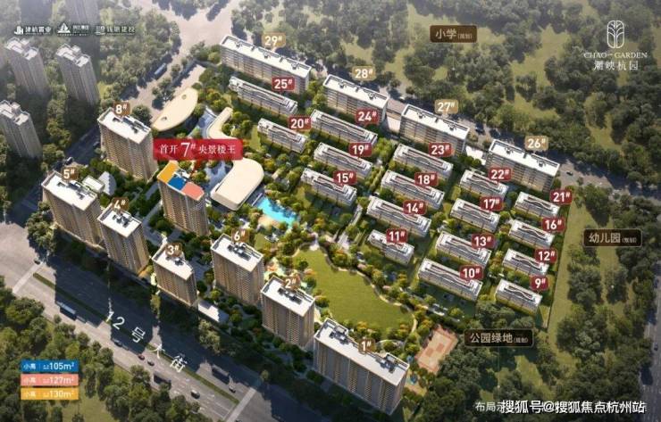作为低密墅区里的小高层,同时拥有私享约2.1万方社区景观,潮映杭园建筑面积约105-130㎡小高层,生而境界不凡。