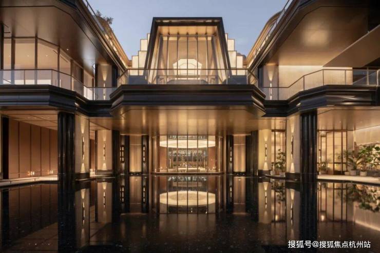 项目建筑外立面灵感源自名表马耳他十字工艺,采用名贵石材+金属铝板,以东方圆融思想整合以雕刻的石材锻打的金属,呈现出独特的人居地标美学。采用大量的玻璃幕墙,增强建筑的通透感和现代感。