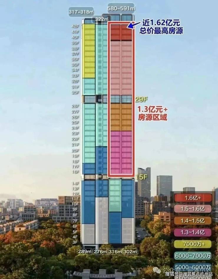 高区600平户型,单价约22w-27w,总价约1.3-1.7亿。(已售罄)
