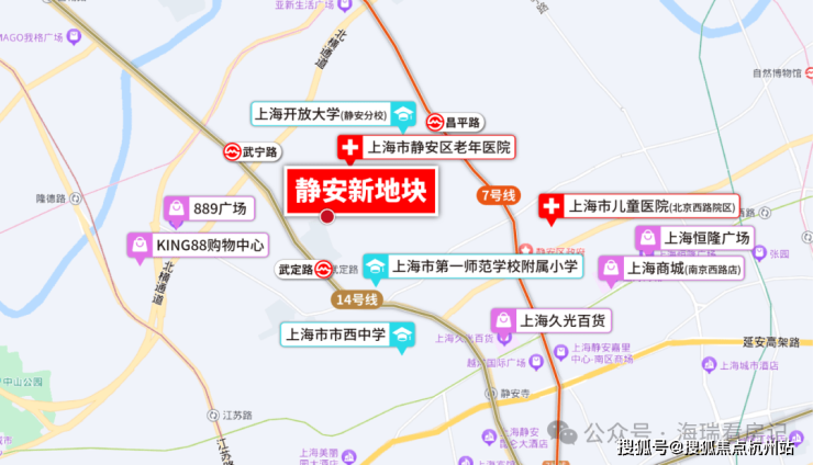 一个能走到静安寺的新房,大约1.4km。