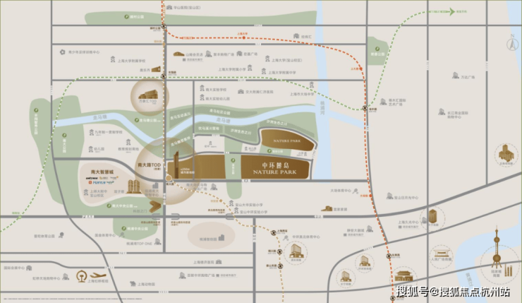轨道交通方面:3条城市快速干道(外环高速、沪嘉高速、中环路)形成的“综合交通体系”,无缝对接15号线南大路地铁站,实现多层次立体交通的无缝出行,15分钟辐射人民广场、虹桥枢纽。