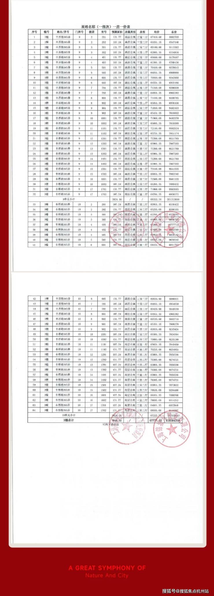 中环麓岛项目一房一价表: