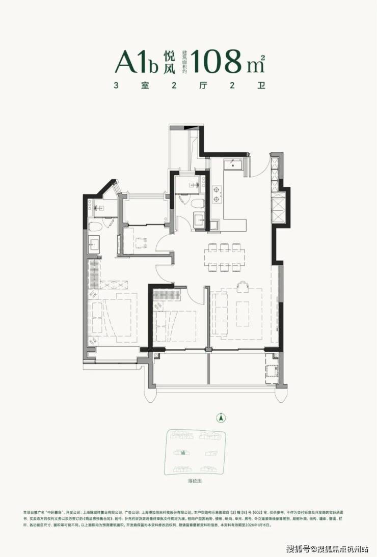 建面约108㎡3房2厅2卫▼