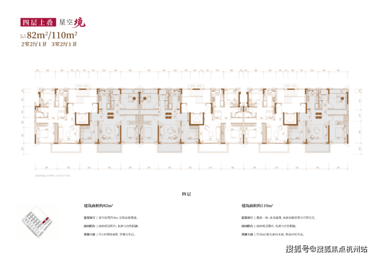 建面约82㎡2房2厅2卫/110㎡3房2厅2卫(四层上叠):