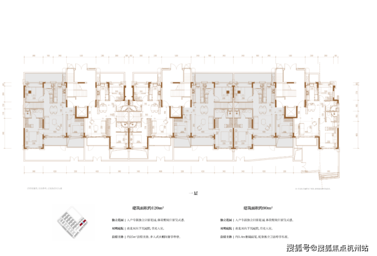 建面约120㎡3房2厅2卫/90㎡2房2厅2卫(一层下叠):