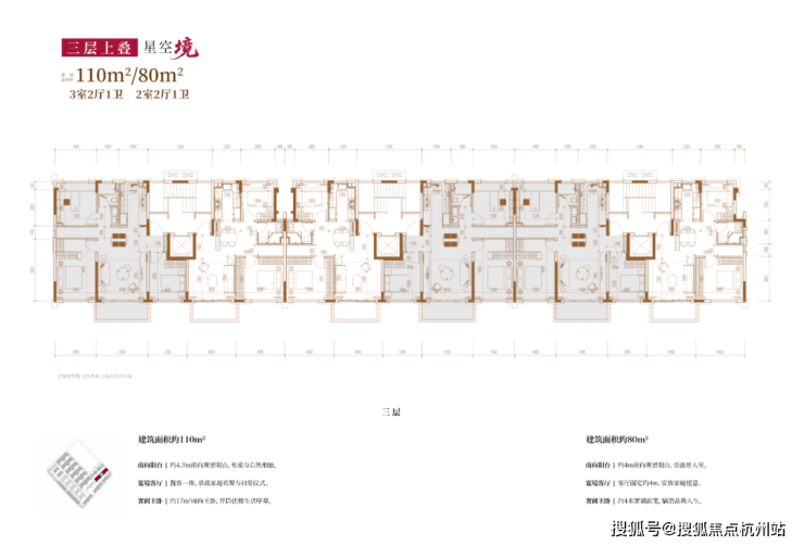建面约110㎡3房2厅2卫/80㎡2房2厅2卫(三层上叠):