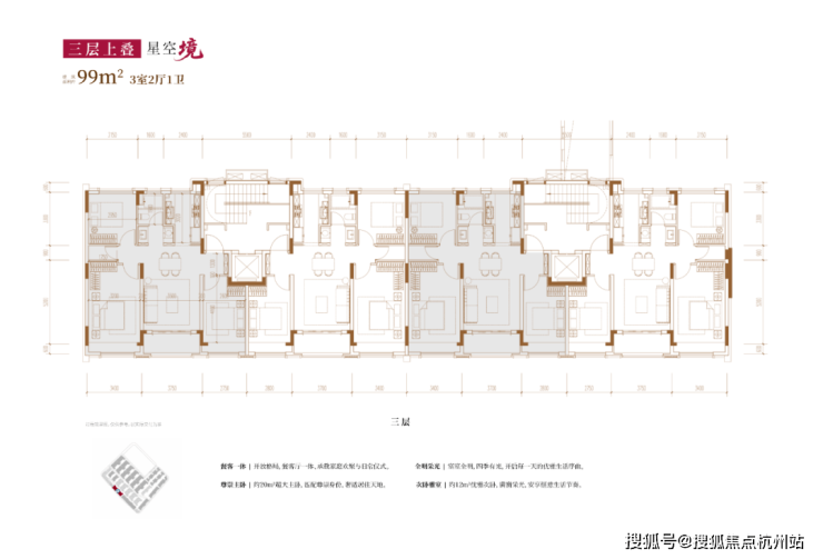 建面约99㎡3房2厅2卫(三层上叠):