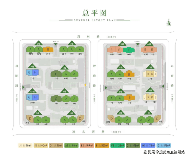 根据设计方案显示,两幅住宅地块(15号、17号) 共计建造16栋8-25层住宅楼以及相关的配套实施。规划住宅1179户。