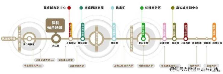 保利·光合跃城依托TOD15号线上盖的交通优势,5站徐汇,9站前滩,3个红绿灯上中环,通勤效率大幅增加。作为上海科创生命线,途径9所大学10个校区、3个国家级科创园区(紫竹国家高新区、漕河泾经济技术开发区、虹桥经济技术开发区)、真如城市副中心、上海南站+上海西站2大火车站,极大程度地加强城市西部内外环线之间的交通能力、带动沿线区域发展!