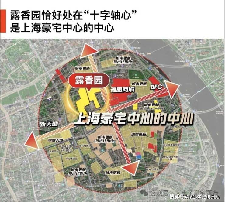 作为上海绝对市心,露香园直线距离人民广场、淮海路、新天地、外滩、豫园等上海市地标性区域均不超过1.5公里,距离陆家嘴直线约2公里。