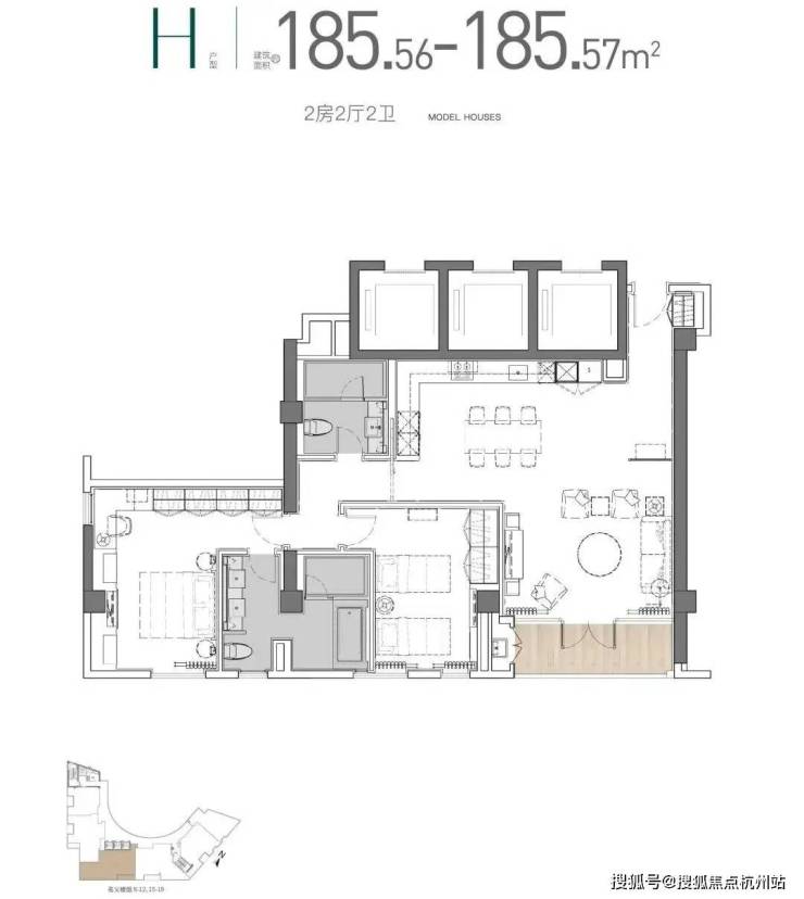 主力户型为建面约110.12㎡、建面约172.05㎡、建面约185.56㎡: