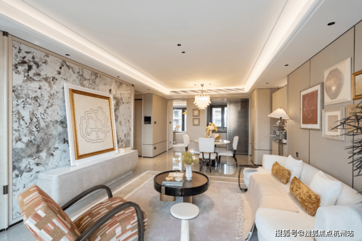 管中窥豹,入 户处采用天然贝母拼接门牌,开门即见精致,归家仪式感瞬间拉满。