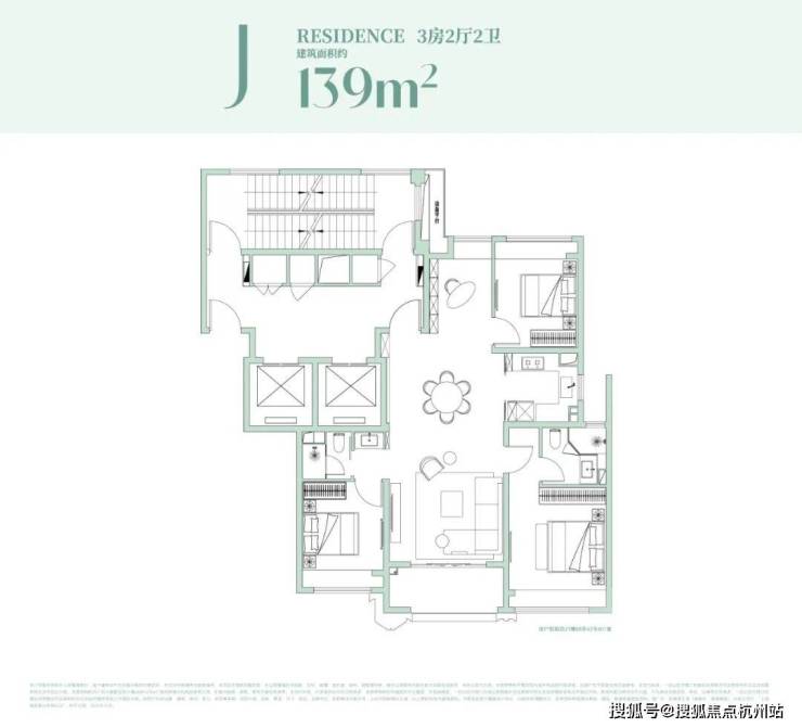 建面约129㎡4房:四叶草布局,核心滨江完美4房