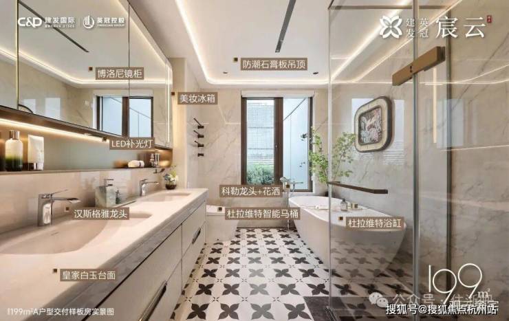 在室内精装上,宸云也采用超高的精装标准:大金中央空调、霍尼韦尔新风、博世洗碗机、博世蒸烤一体机、方太油烟机、方太燃气灶等,餐等运用大面积石材,堪称“奢石博物馆”,全屋还定制了让生活更有秩序和整洁的收纳体系,高层户户赠送储藏柜。