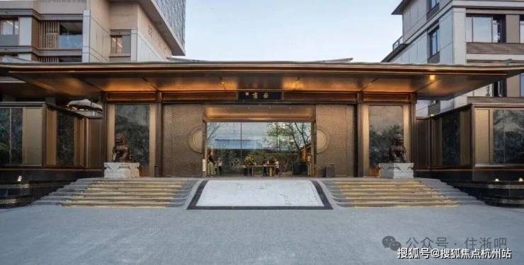归家的第一重仪式感,便是那气势恢宏的大门。歇山顶的形制,在古代建筑等级中象征着崇高的地位,加上近51米的宽度与约11米的高度,配合门前蕴含“钱塘潮涌”寓意的定制水纹御道,以及庄严守护的成对黄铜狮与苍劲罗汉松,归家的尊崇感油然而生。