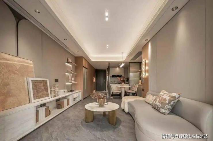 入户门厅以弧形悬浮顶棚为特色,为业主带来柔和温润的归家关怀,让归家的每一步都充满舒适与惬意。