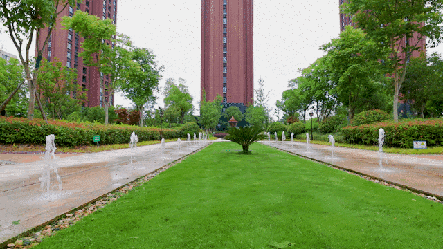 一棵棵绿植,是散落在社区里一个个点,当点连成线,于是就能看到全域呈现的中轴景观。俯瞰社区,视觉效果超具冲击力,满眼间尽是绿意。