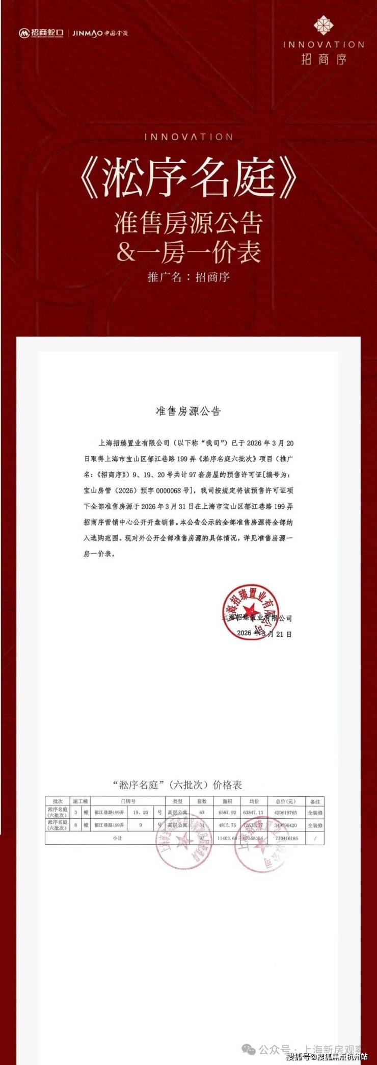 最新消息!中环北抬+双轨枢纽,快速直抵陆家嘴!18号线长江西路站【招商序】六批次加推97套约100-143㎡3-4房;均价67558元/m²!认购金50万;认购时间:3月22日-3月25日;沪上首个三阳台户型、首个悬浮岛屿下沉式庭院。实景示范区开放,售楼处线上火热预约中!
