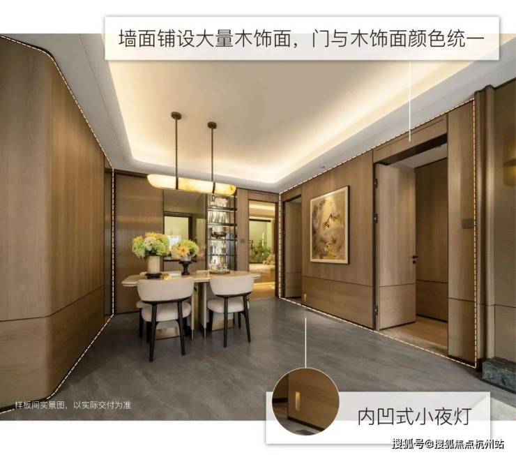 不同于市面上门是门,框是框,墙是墙,看房时“五颜六色”。江湾金茂府室内采用一体化设计语言,实现空间、色彩与材质的协调统一。