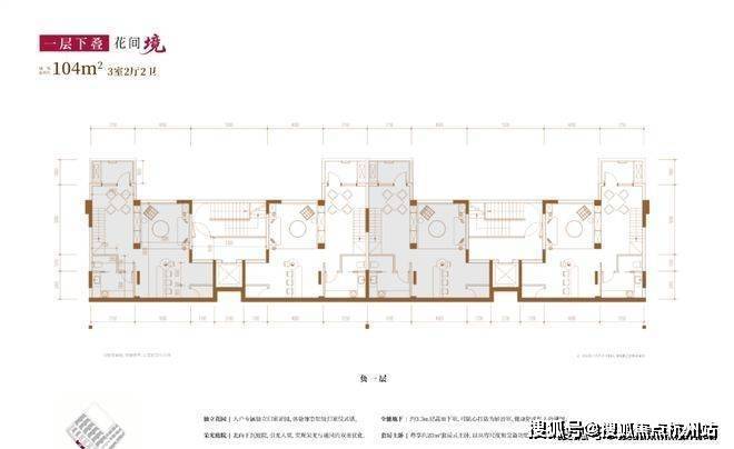 建面约104㎡3房2厅2卫(一层下叠):