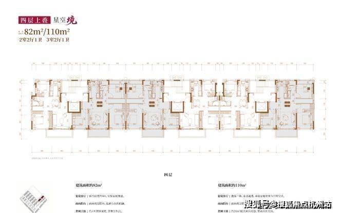 建面约82㎡2房2厅2卫/110㎡3房2厅2卫(四层上叠):