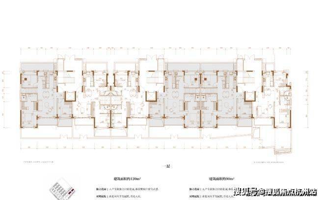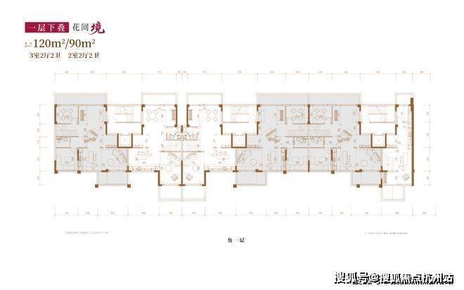 建面约120㎡3房2厅2卫/90㎡2房2厅2卫(一层下叠):