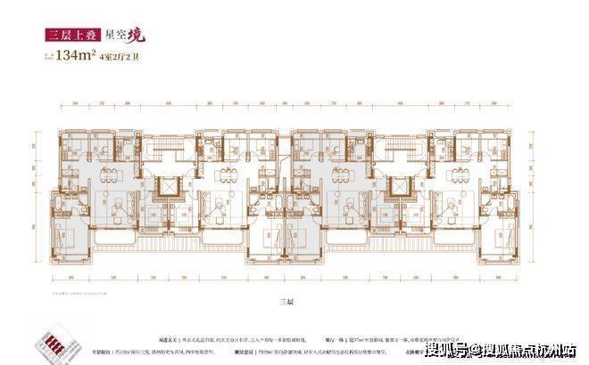 建面约134㎡4房2厅2卫(三层上叠):