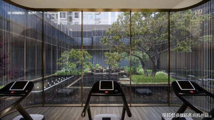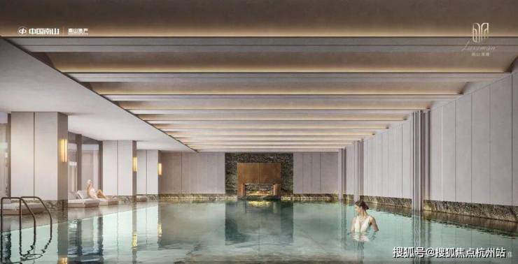 同时,眼见为实的落差约10米的悬瀑水幕下沉式庭院,在奢石、臻材等元素的空间应用中,不但将项目规划的“缦奢主义”实景还原,同时还将会客区、泳池和健身房的功能和景观有机融为一体。