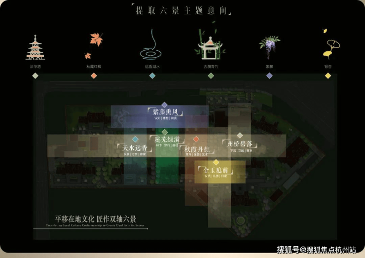 社区内布局“礼序归家轴+景观漫步轴”纵横交织的双轴景观动线,将州桥老街、秋霞圃、远香湖、古猗园、紫藤园、银杏古树等嘉定六景提炼、转译,形成了具有在地文化特色的六大景观主题空间!并以此形成整体约300米的景观纵深,未来将呈现出一个超大的中央公园。