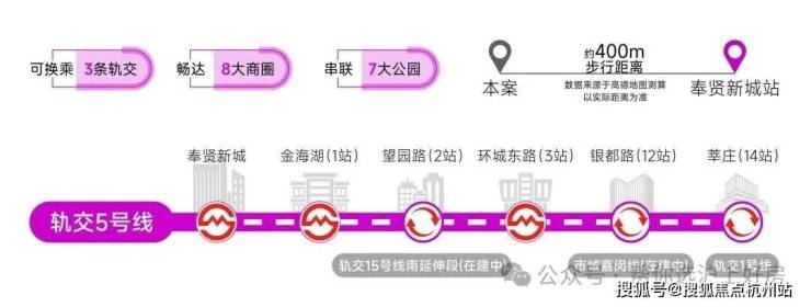 轨交网络:5号线、15号线南延伸段(在建中)、市域嘉闵线南延伸段(规划中)、沪乍杭高铁(规划中)及南枫线(在建中)