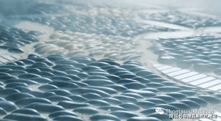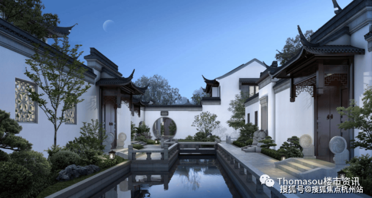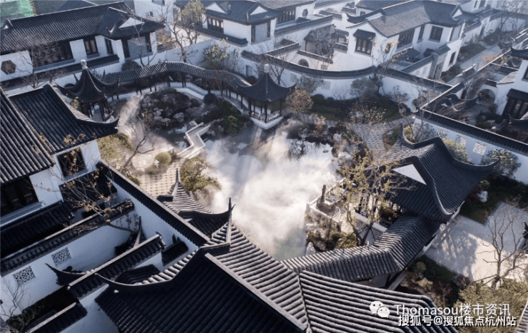 同时,建筑采用宋代宫殿,建筑出檐宽广,檐下增加斗拱、镂空雕花、甘蔗脊、阑额等元素,约2/3宅园设置入户连廊,为全国之最,雅贵造极。