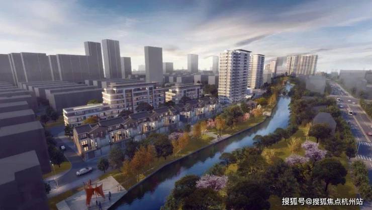而项目整体建筑布局随河蜿蜒,高低错落的建筑形态也契合了江南水乡的水韵特色。