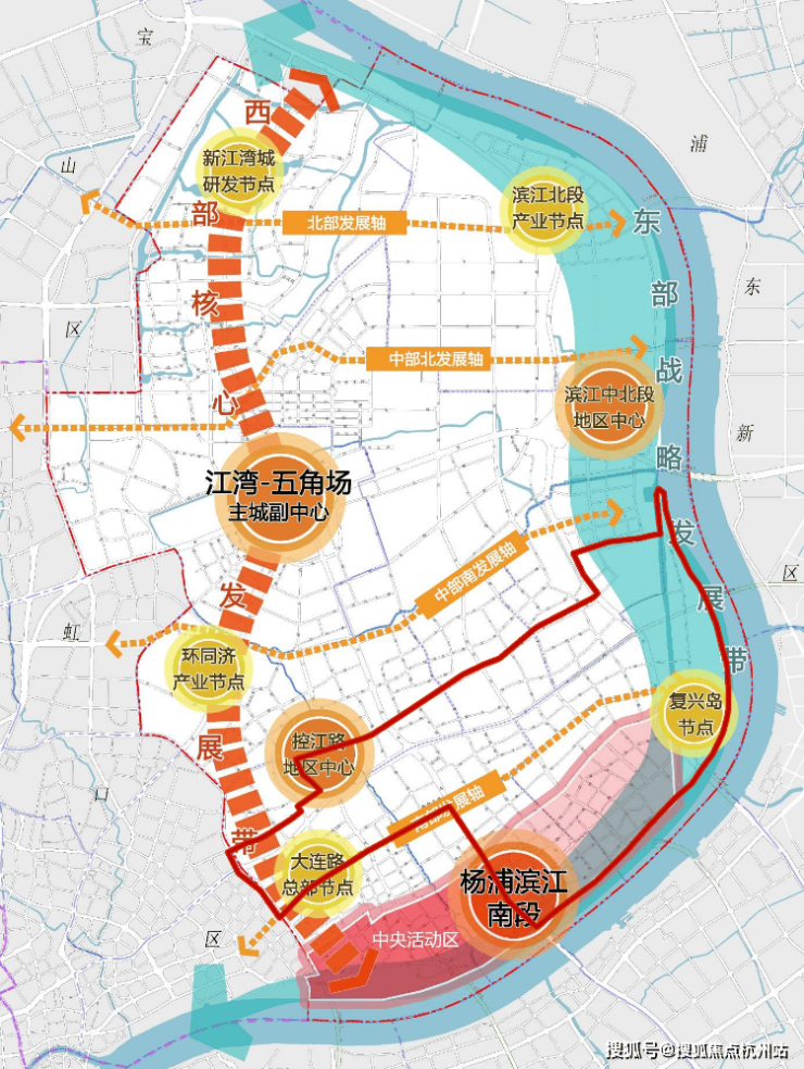 周家嘴板块坐落于南部发展轴的核心位置,与东部战略发展带紧密相连。