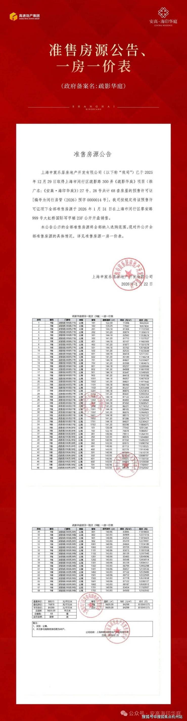 莘庄“地王”!「安高·海印华庭」在售约120-140㎡3-4房;均价84299元/㎡!
